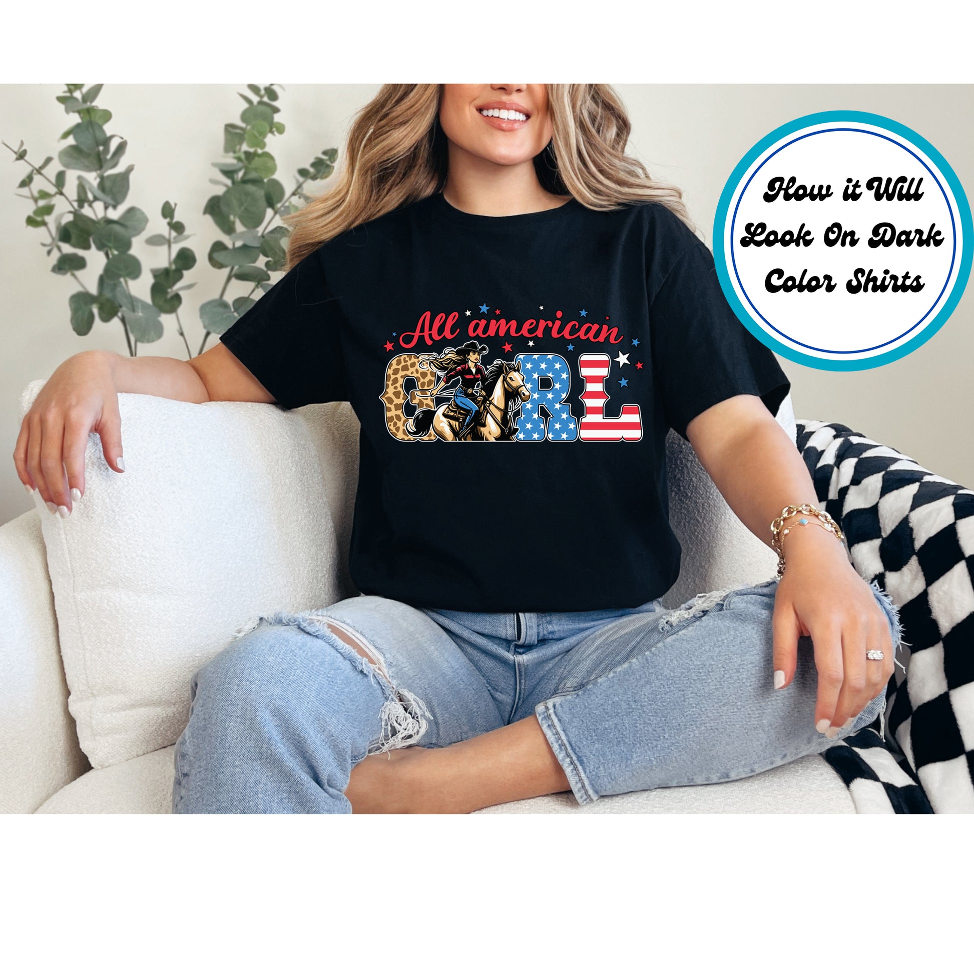4th Of July DTF Transfer Iron On Heat Transfer - Ready to Press, All American Cowgirl DTF Transfer 7909