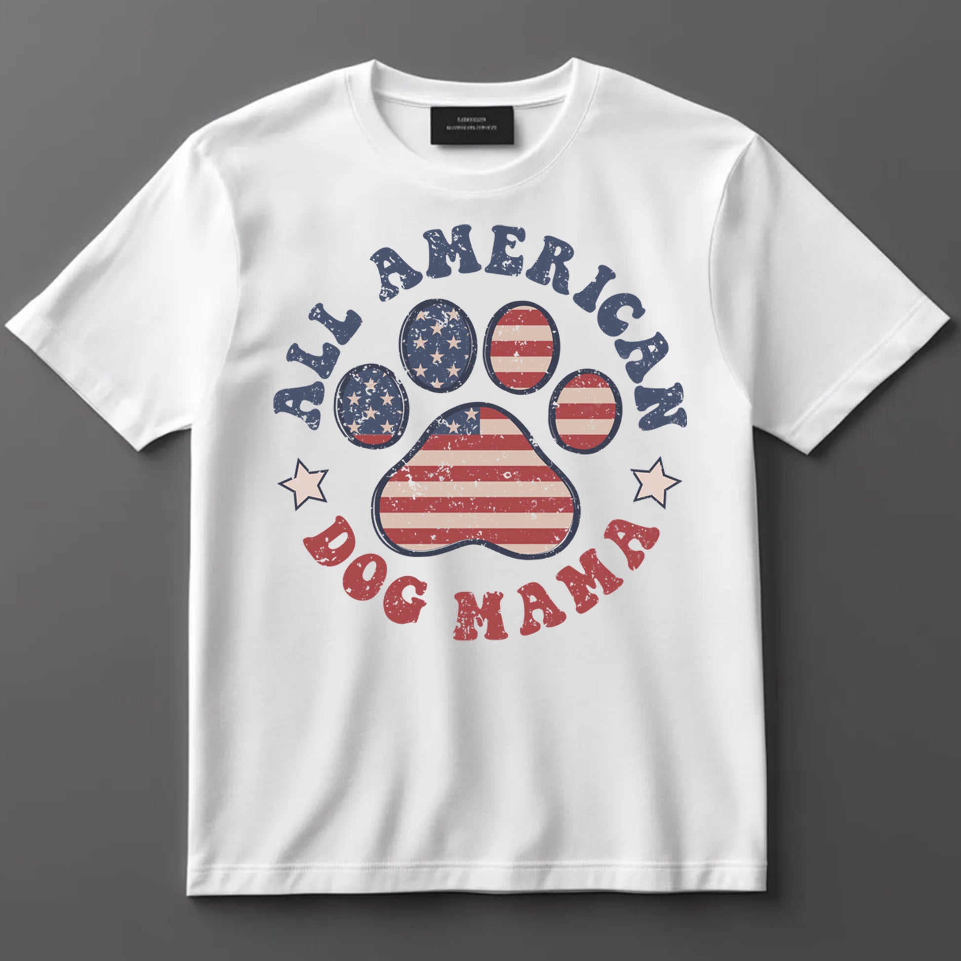 Product Description: This ready-to-press DTF transfer features a distressed American flag paw print with the phrase “All American” and patriotic stars. A perfect 4th of July print for pet lovers who want to celebrate their furry friends in red, white, and blue.
