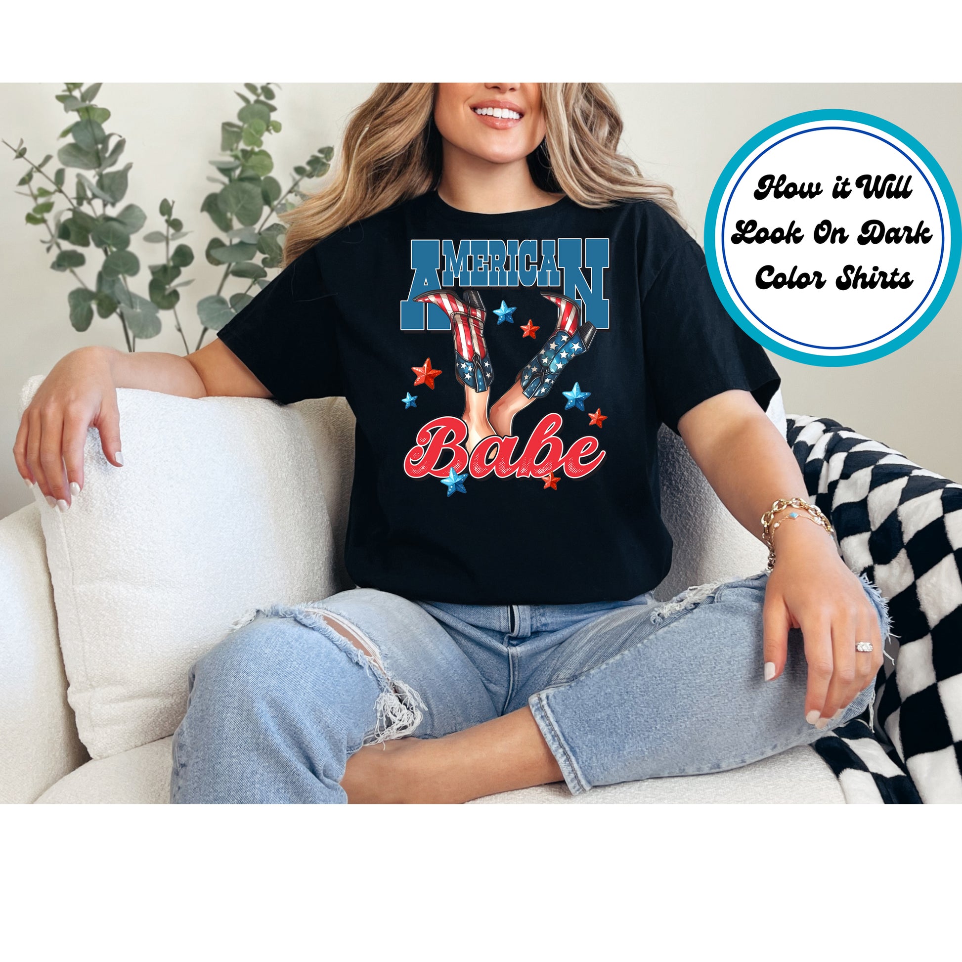 4th Of July DTF Transfer Iron On Heat Transfer - Ready to Press, American Babe DTF Transfer 8082