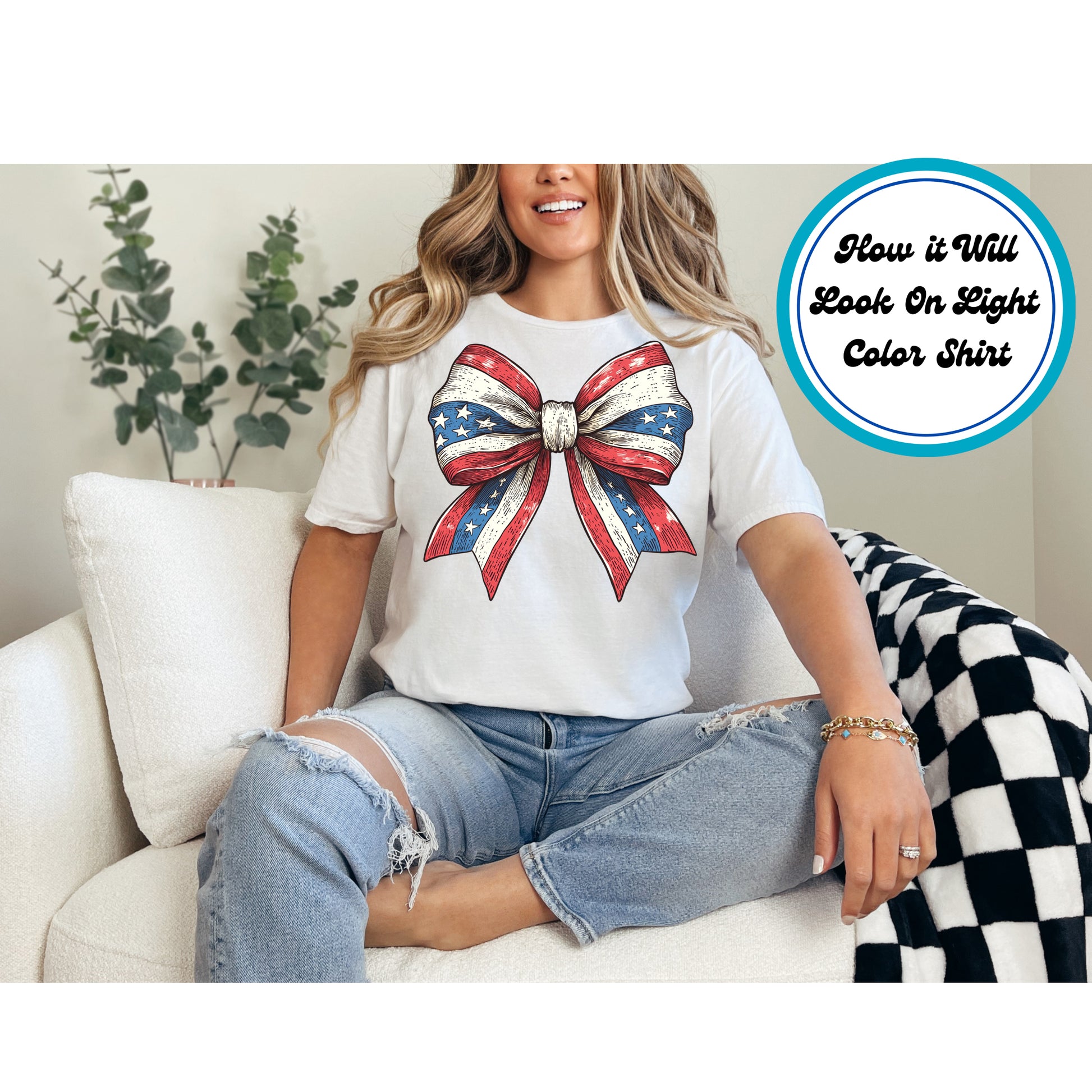 4th Of July DTF Transfer Iron On Heat Transfer - Ready to Press, American Flag Bow DTF Transfer 7282