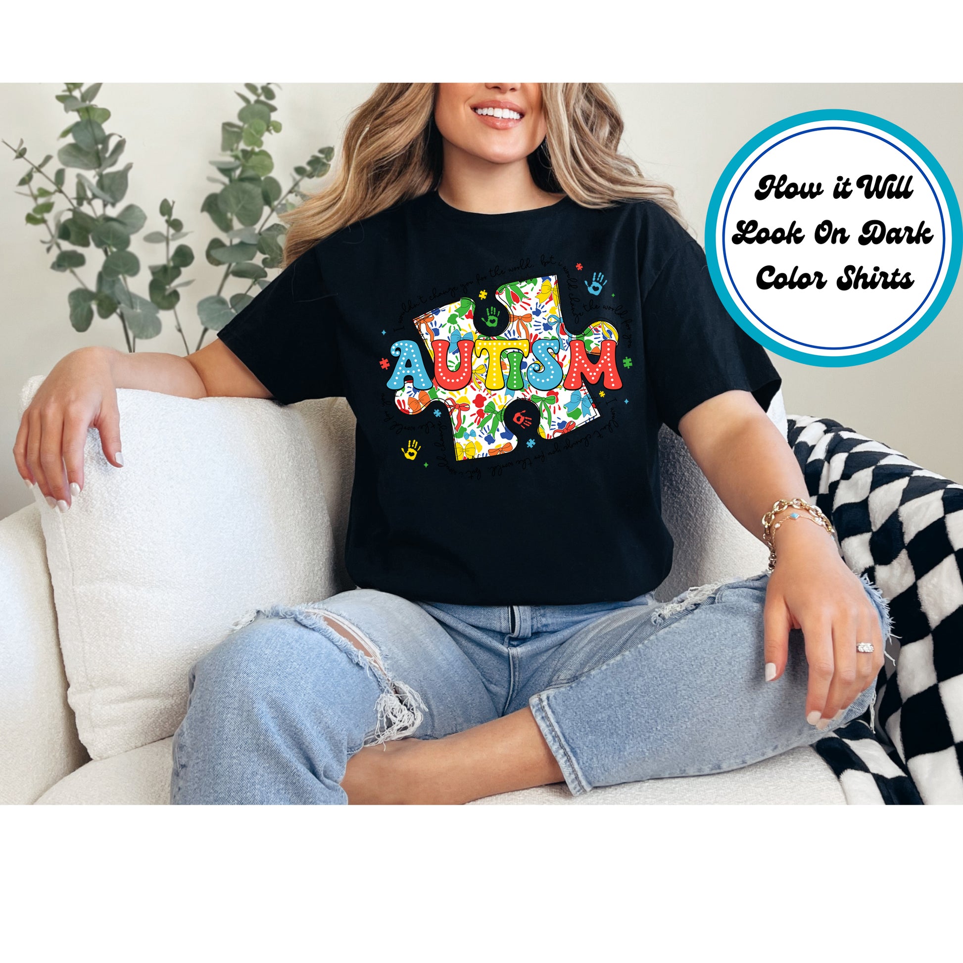 Autism Awareness DTF Transfer Iron On Heat Transfer - Ready to Press, Colorful Puzzle Piece DTF Transfer 5644
