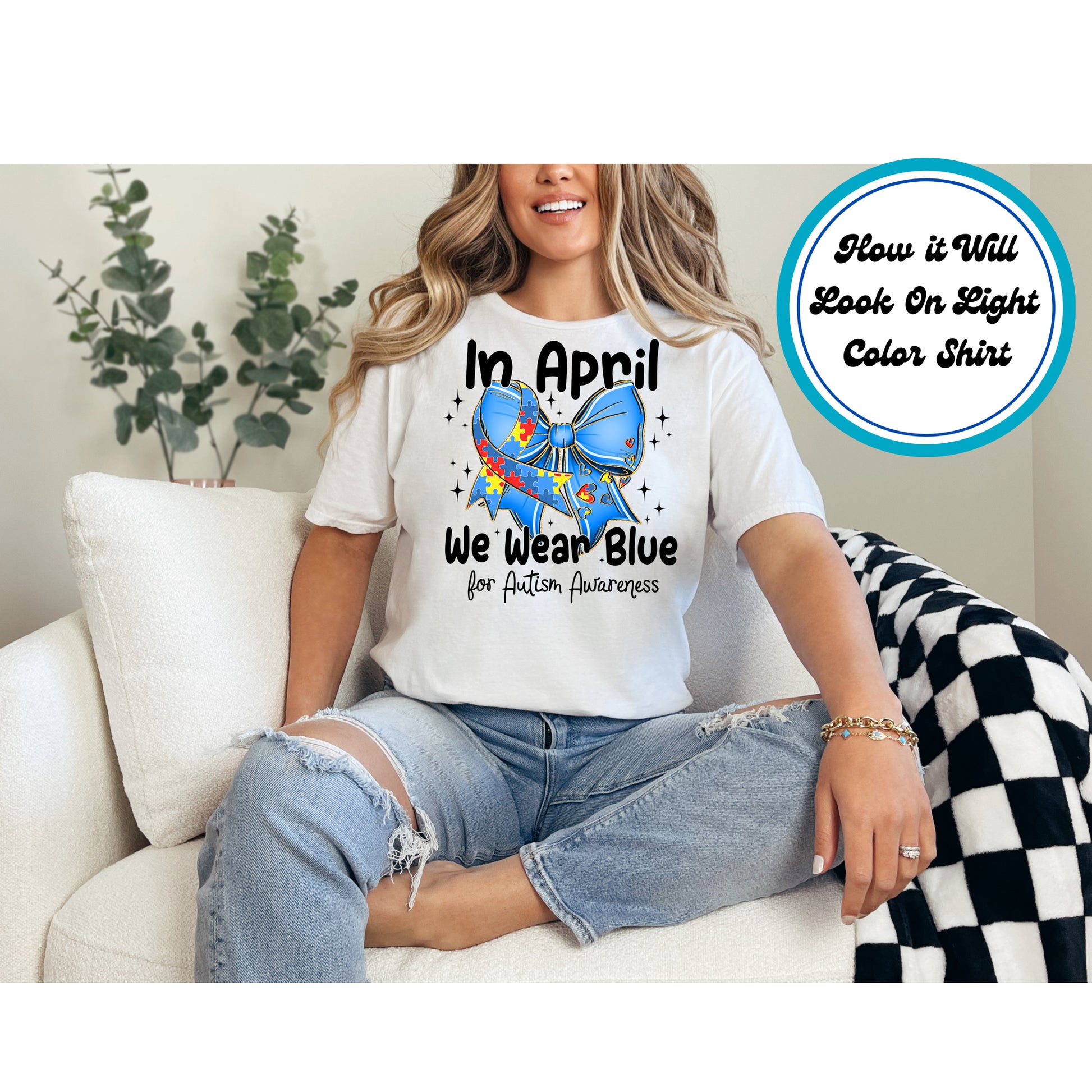 Autism Awareness DTF Transfer Iron On Heat Transfer - Ready to Press, In April We Wear Blue DTF Transfer 5921