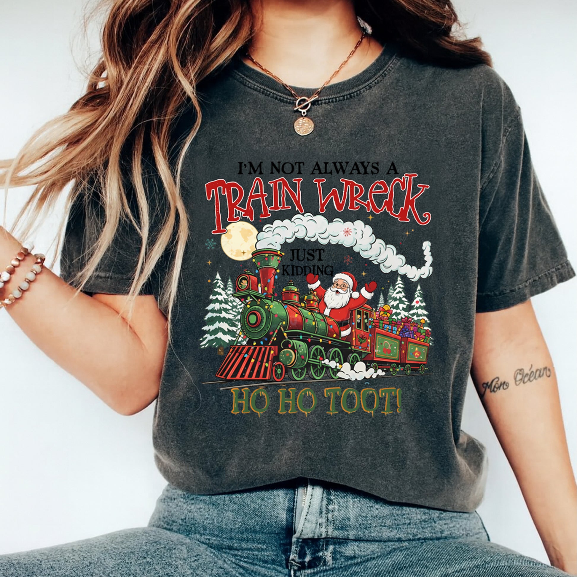 Christmas DTF Transfer – “I’m Not Always a Train Wreck” Funny Santa Train Ready to Press Iron On Heat Transfer for DIY Shirts 11835