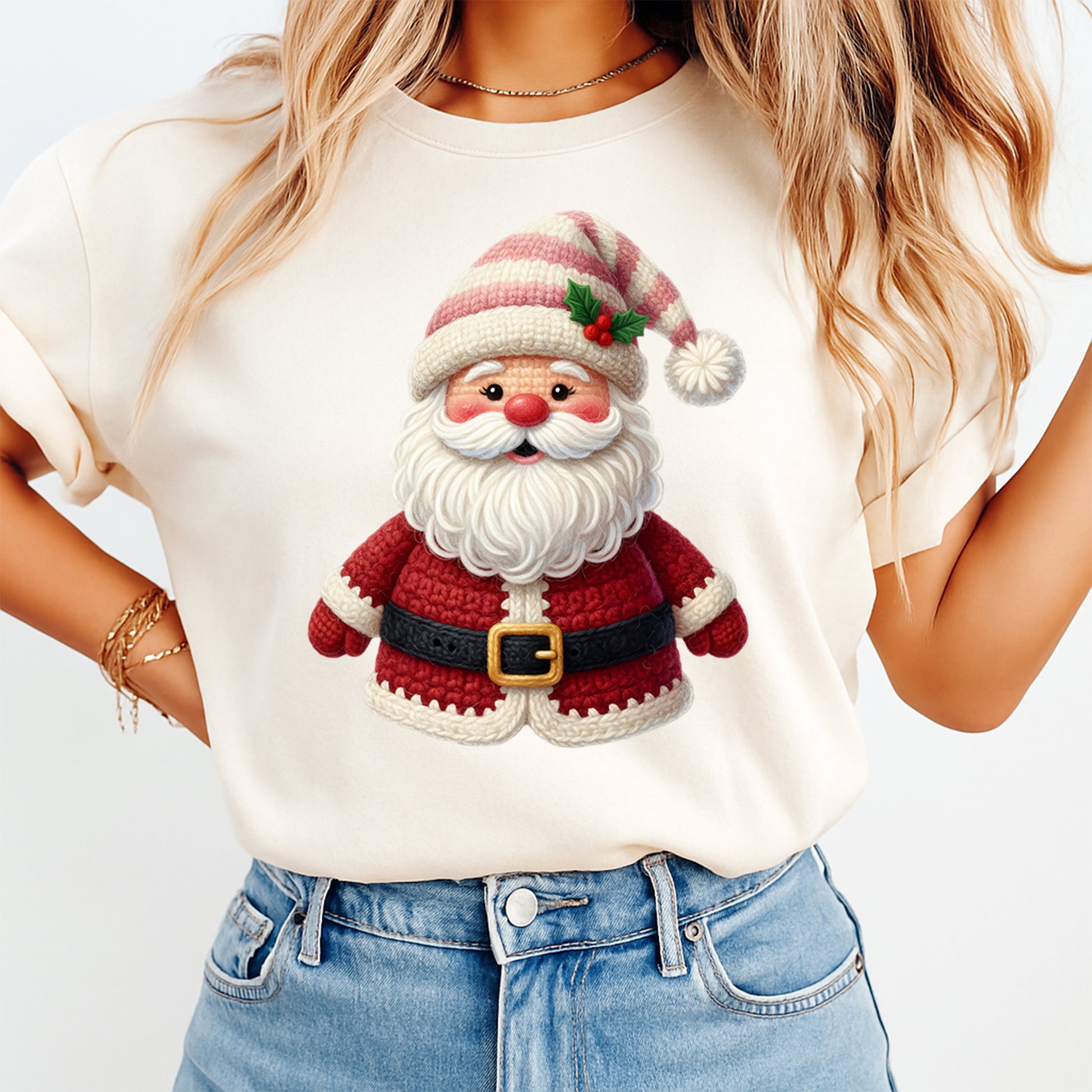 Christmas Yarn Crochet Santa DTF Transfer – Ready to Press Iron On Heat Transfer for DIY Christmas Shirts 12277