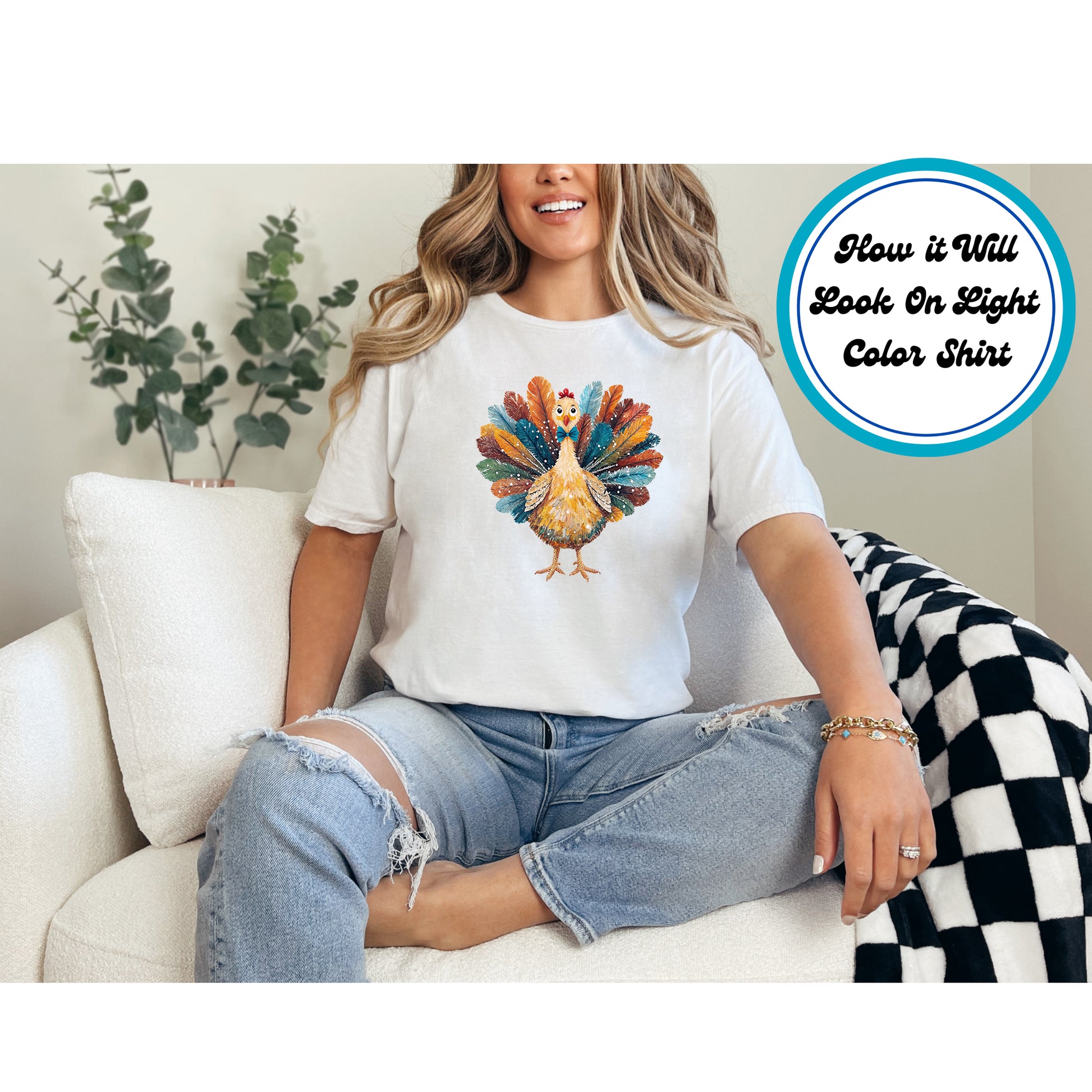 Thanksgiving DTF Transfer – Colorful Feathered Turkey with Bow Tie Ready to Press Iron On Heat Transfer for DIY Shirts 11280