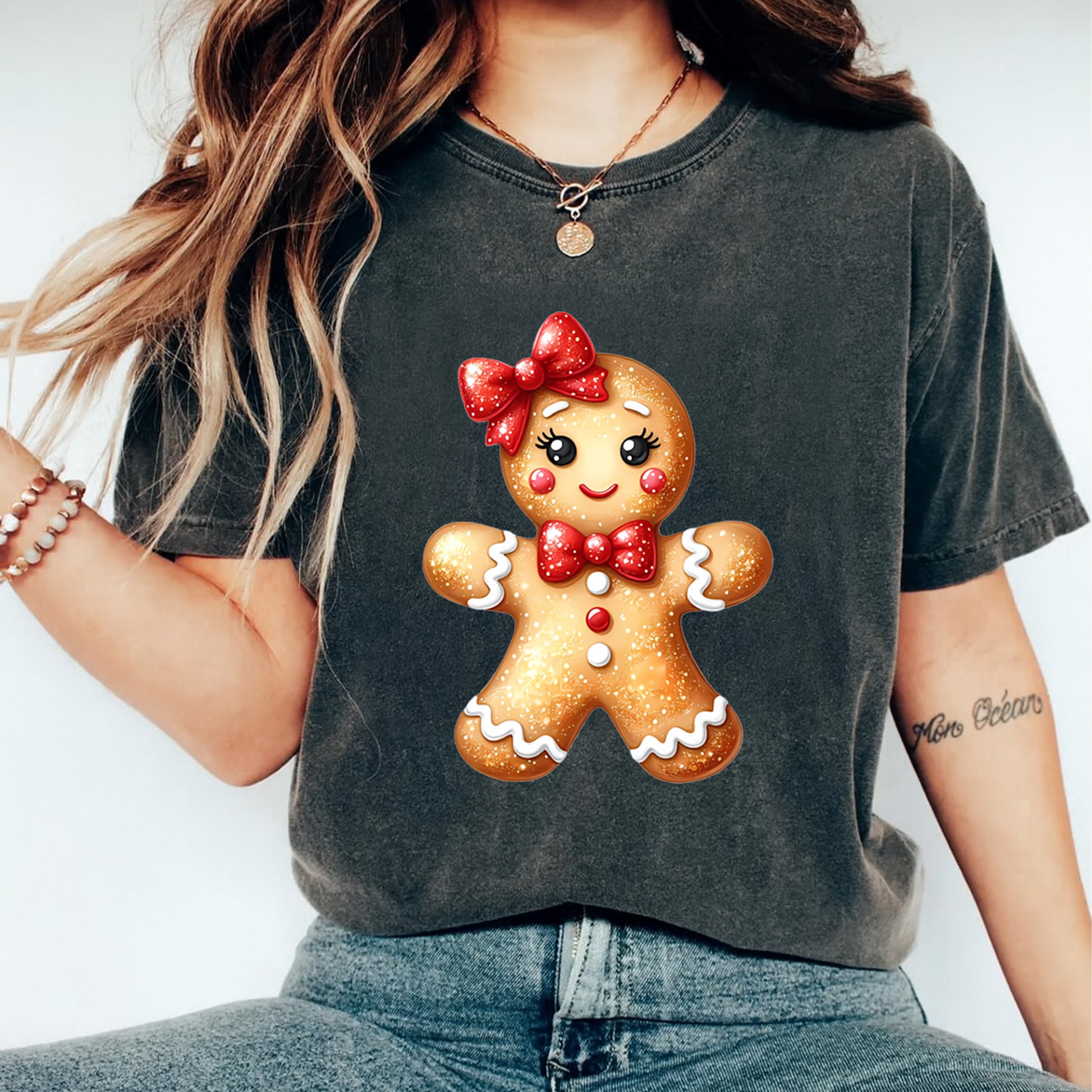 Gingerbread Girl Bow DTF Transfer – Ready to Press Iron On Heat Transfer for DIY Shirts 11974