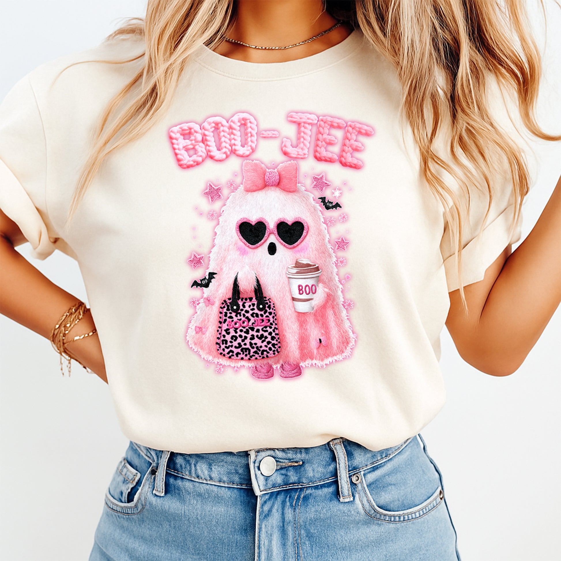 Halloween Pink Ghost Boo-Jee DTF Transfer – Ready to Press Iron On Heat Transfer for DIY Halloween Shirts 12162