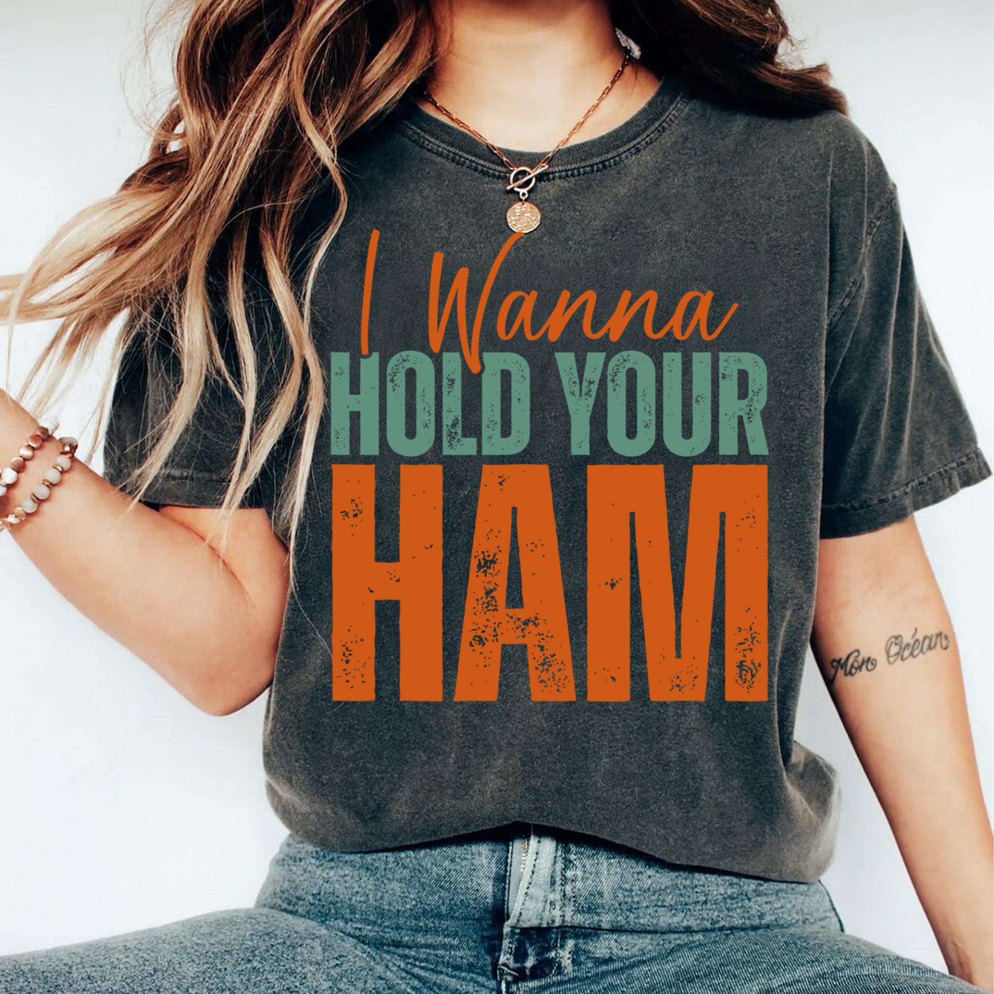 Thanksgiving DTF Transfer – I Wanna Hold Your Ham Ready to Press Iron On Heat Transfer DIY Thanksgiving Shirts 12473