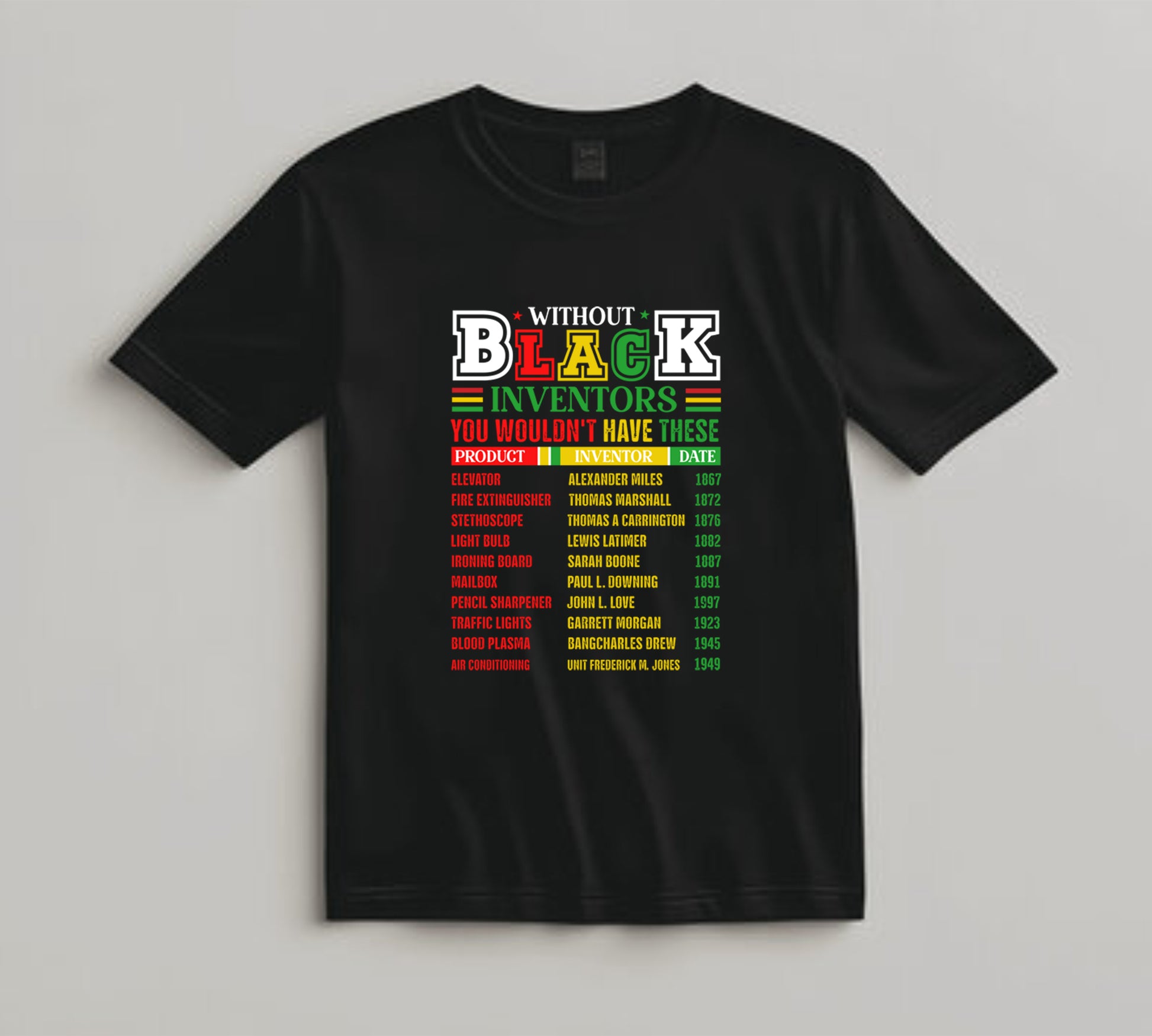 Product Description: Honor the groundbreaking contributions of Black inventors with this informative ready-to-press DTF transfer. Featuring iconic inventions and their inventors, it's ideal for educational apparel and creative DIY projects.