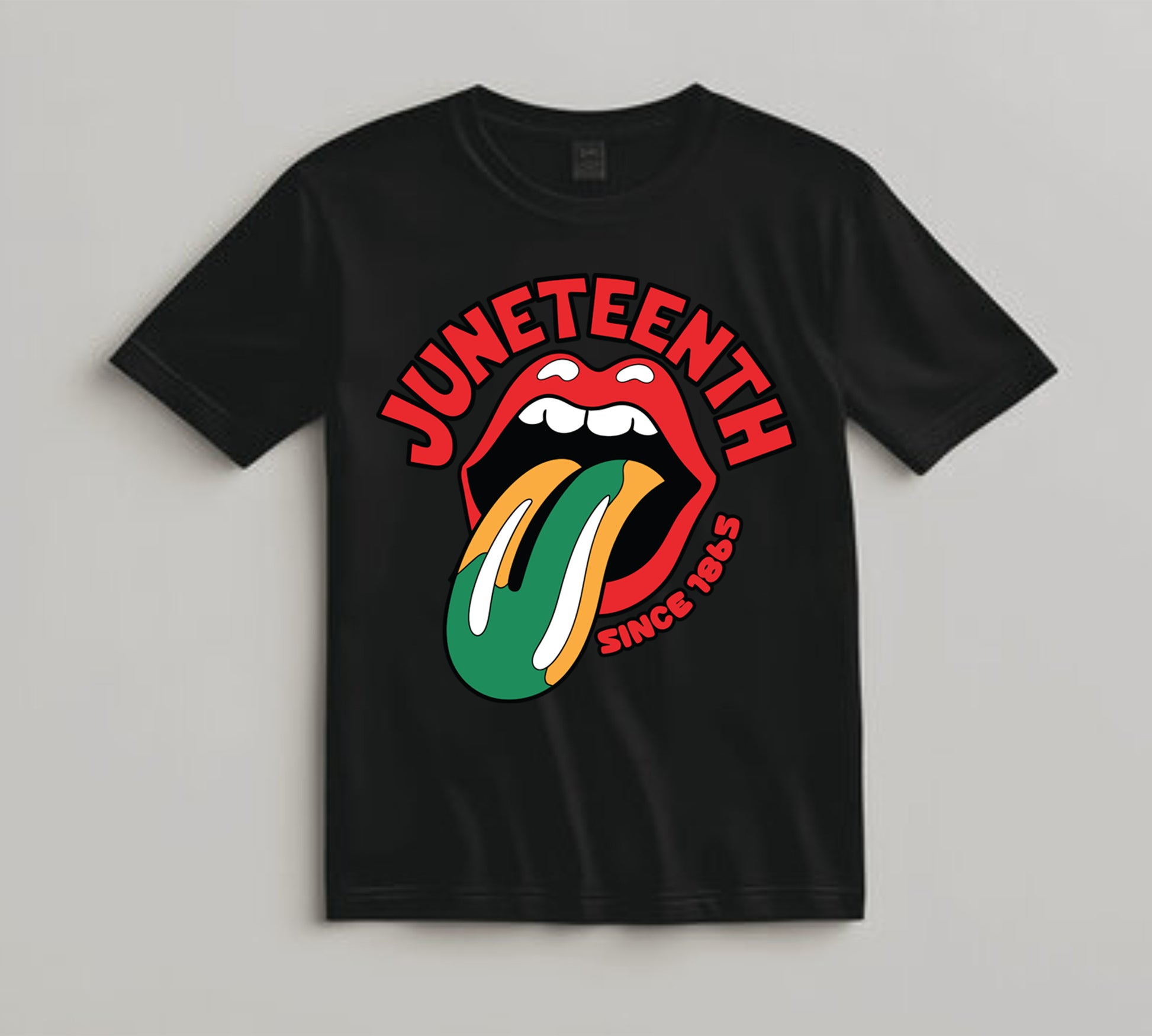 Product Description: Celebrate freedom with this vibrant Juneteenth DTF transfer featuring red lips, bold tongue in red, green, yellow, and the words “Since 1865.” A striking graphic perfect for June 19th apparel.