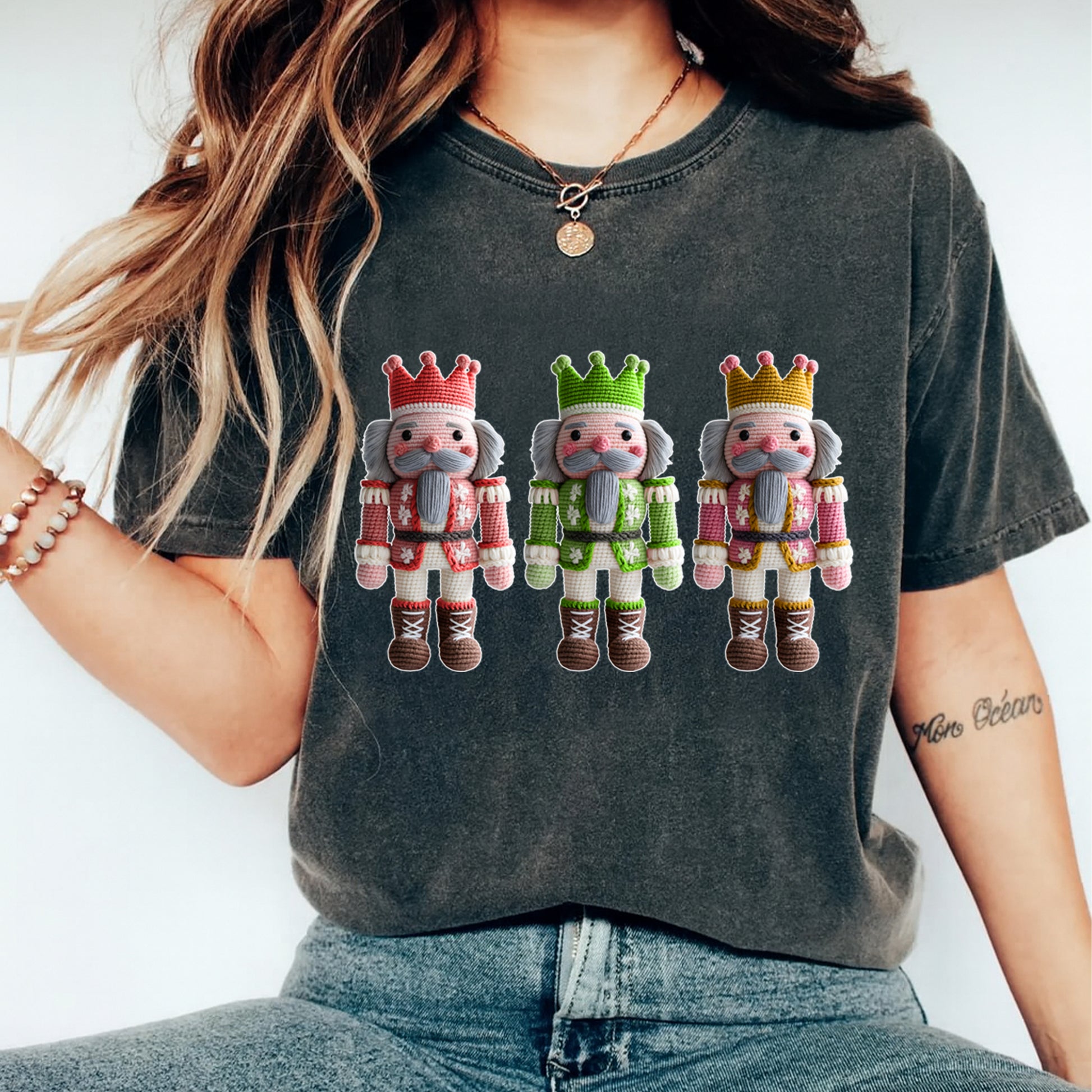 Christmas Nutcracker Trio DTF Transfer – Crochet Texture Holiday Iron On Heat Transfer for DIY Christmas Shirts 12144