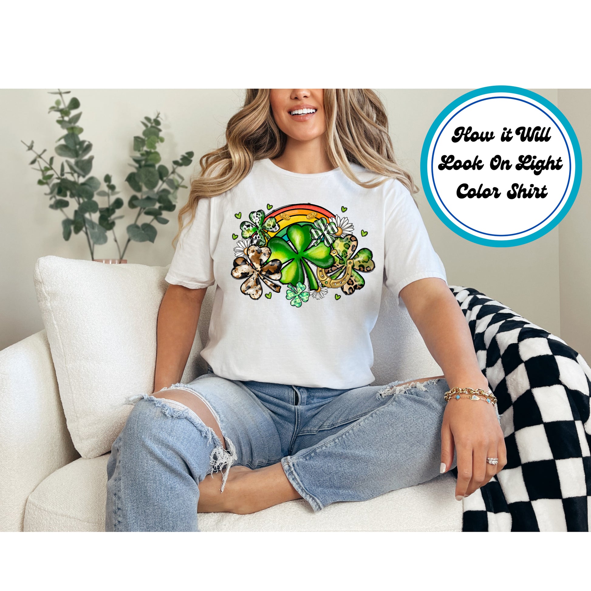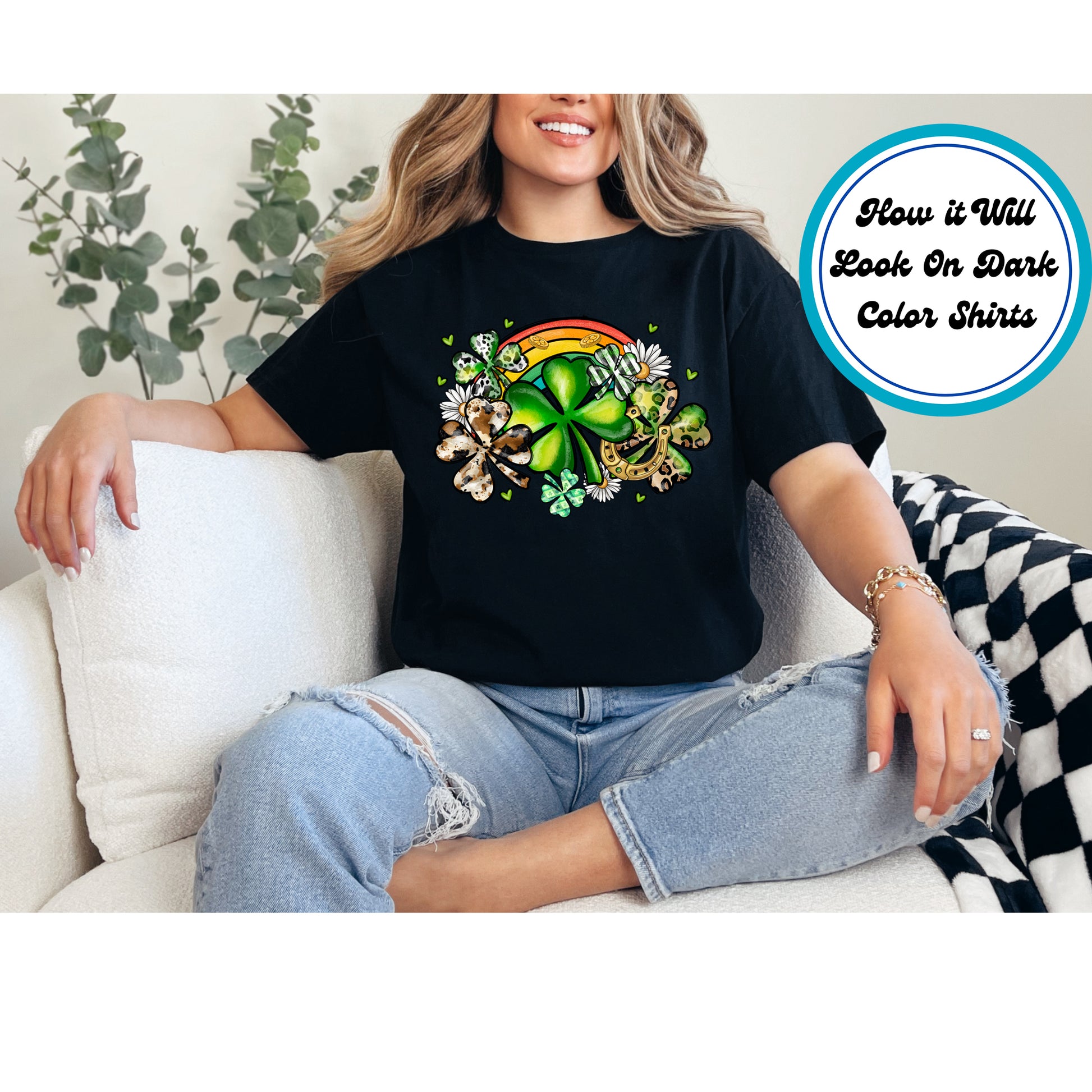 St. Patrick's Day DTF Transfer Iron On Heat Transfer - Ready to Press, Shamrocks & Rainbow DTF Transfer | Ready to Press | St. Patrick's Day Design 4279