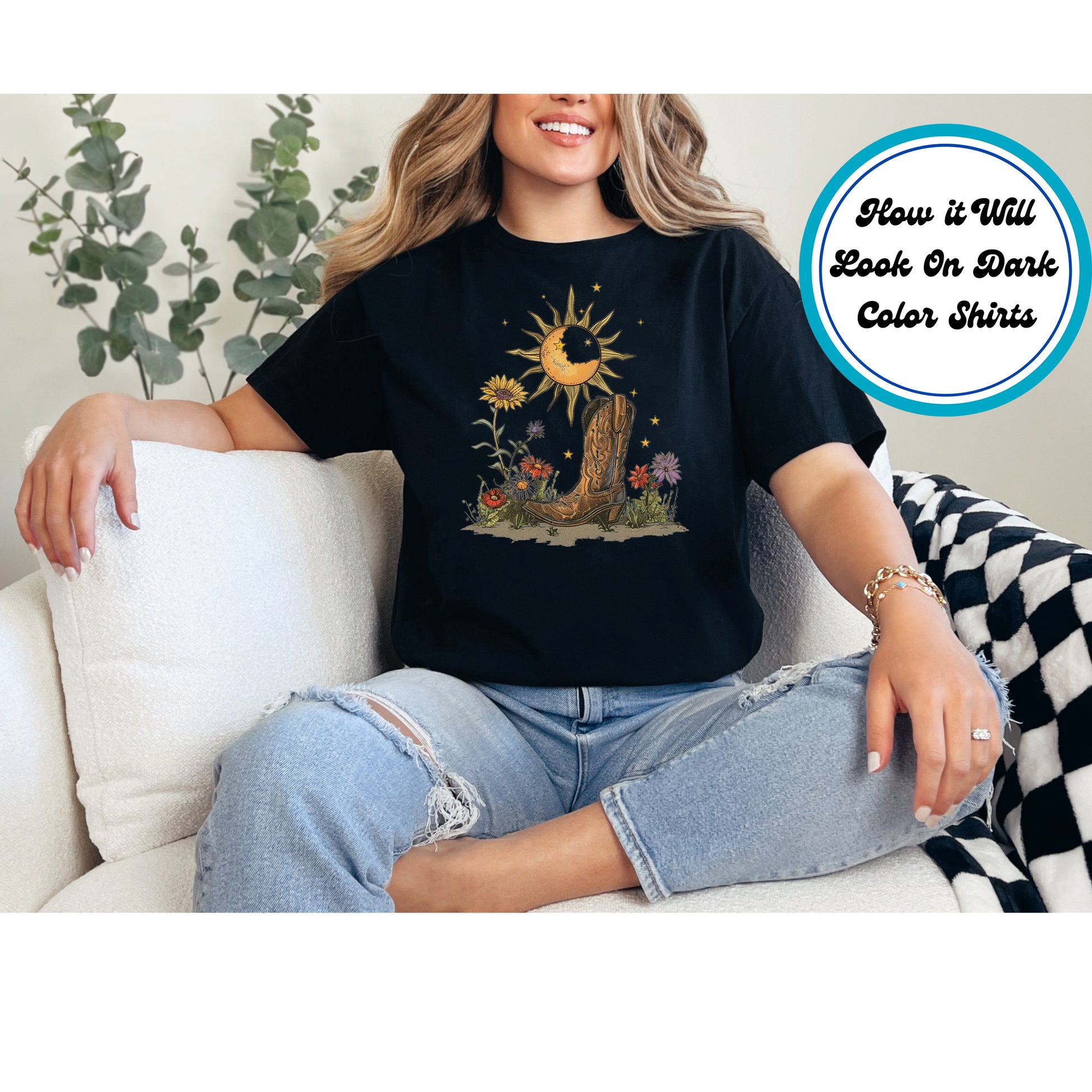 Western DTF Transfer Iron On Heat Transfer - Ready to Press, Celestial Western Boot DTF Transfer 5574